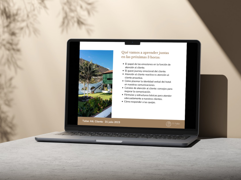 Para esto, la formación e implicación del personal de recepción era clave, por lo que diseñé para este departamento un manual de atención al cliente con información detallada sobre los procesos a llevar a cabo así como las ofertas, respuestas y propuestas a realizar a los huéspedes en cada punto de contacto.